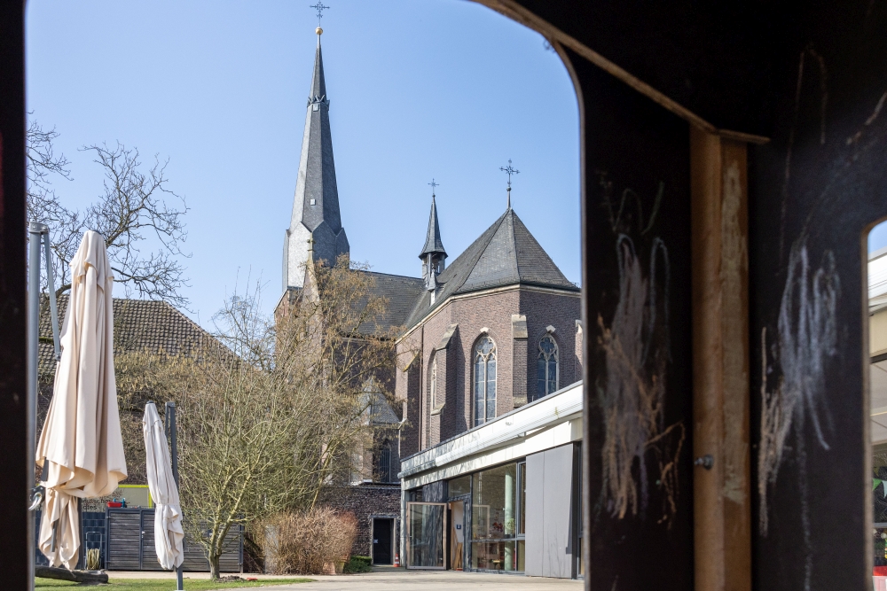 Das Kernthema des Architektenentwurfs lautete „Willkommen in unserer Mitte“. Die Baukörper des Pfarrzentrums und der Kita wurden auf dem Grundstück so positioniert, dass in der Mitte des Ensembles im Zusammenspiel mit den vorhandenen Altbauten ein großzügiger zentraler Platz entstand.