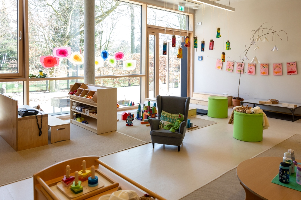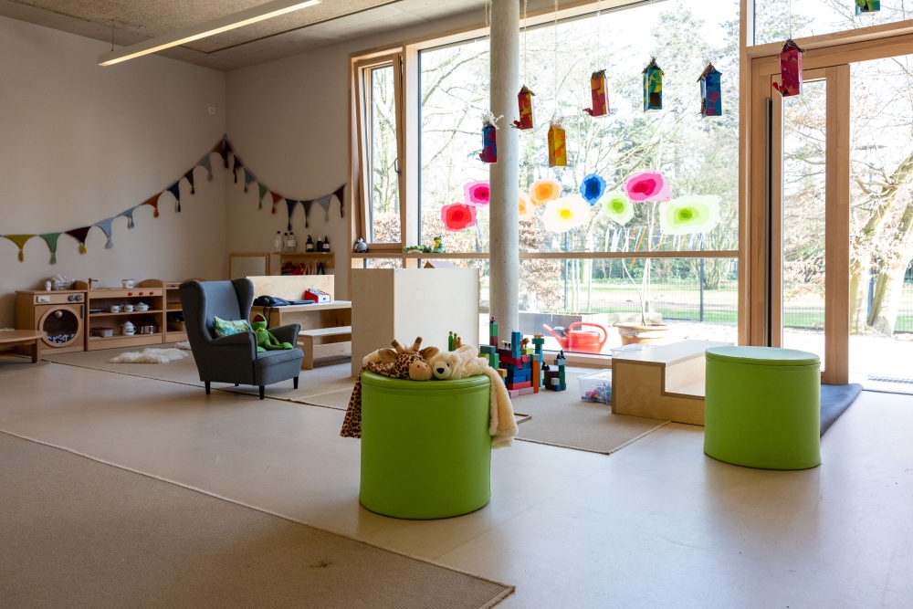 Die großzügigen, hellen Räumlichkeiten der Kita St. Gertrudis bieten Platz für die Betreuung von 102 Kindern im Alter von zwei bis sechs Jahren.