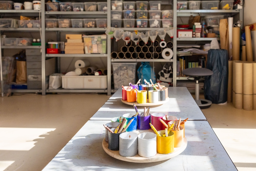 Seit Bezug des Neubaus arbeiten wir nach dem offenen Konzept. Das heißt, wir verzichten auf feste Gruppen zugunsten von Funktionsräumen (zum Beispiel Atelier oder Bauraum), in denen sich die Kinder frei bewegen und selbstbestimmt spielen können. Dabei werden sie von unserem pädagogischen Team aufmerksam begleitet.